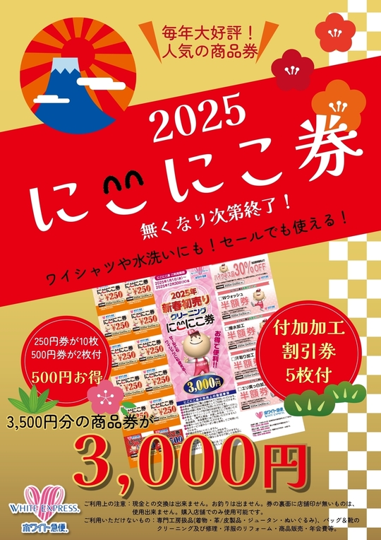 付加加工の割引券もついていますので、実質3,500円以上の価値があります!こちらは、1枚で何点でもOK(^_-)-☆有効期限も約1年間ございますので、その季節のお品物に合わせて付加加工をご利用いただけますよ。