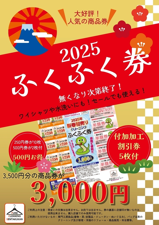 付加加工の割引券もついていますので、実質3,500円以上の価値があります!こちらは、1枚で何点でもOK(^_-)-☆有効期限も約1年間ございますので、その季節のお品物に合わせて付加加工をご利用いただけますよ。