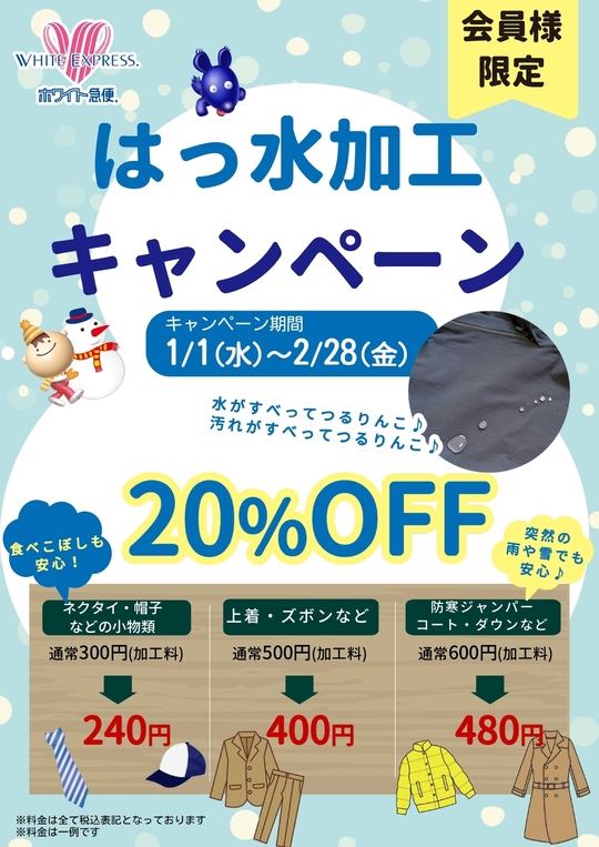 はっ水加工キャンペーン開催!!