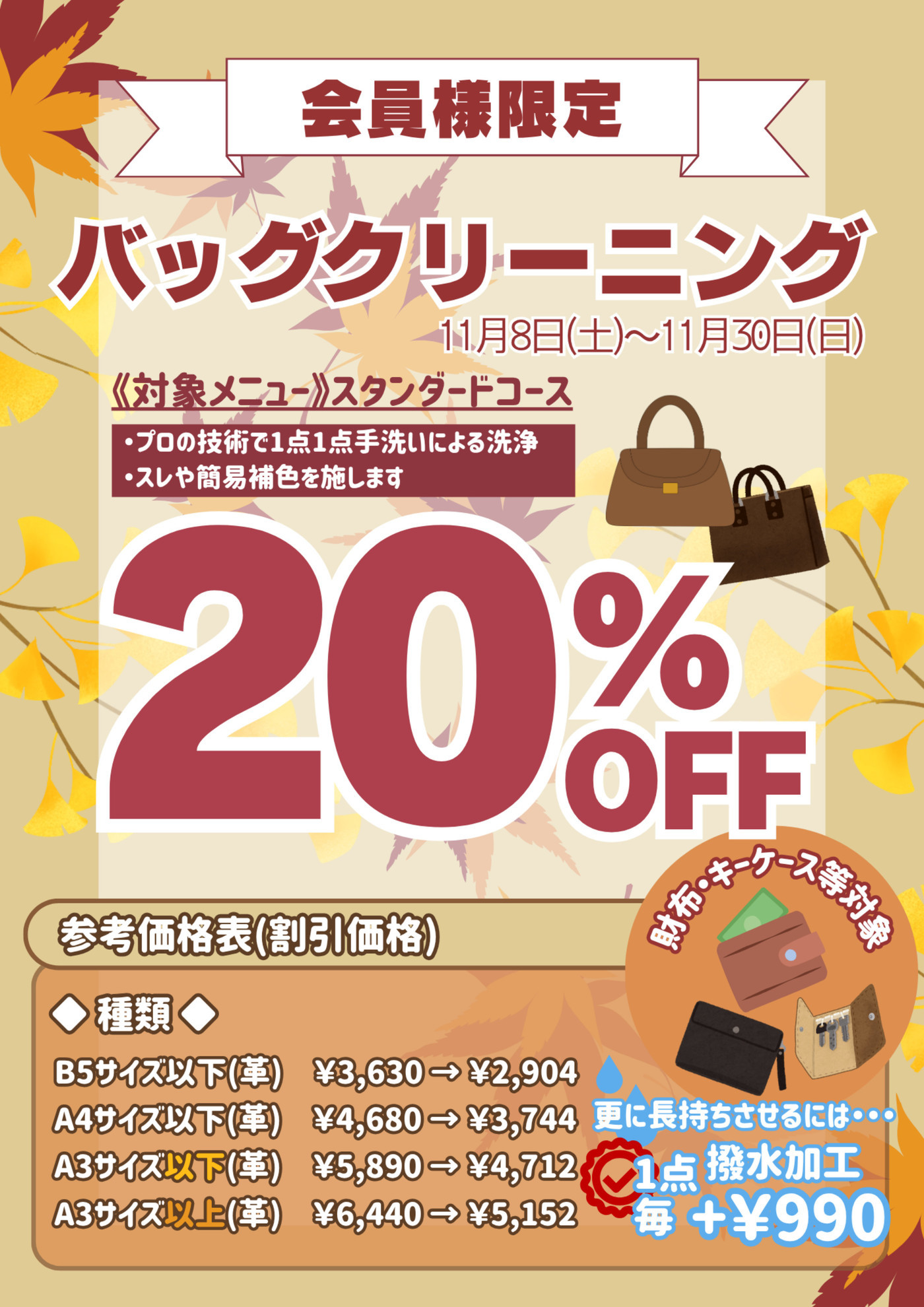 バッグクリーニング (スタンダードコース) 20%OFFキャンペーン
